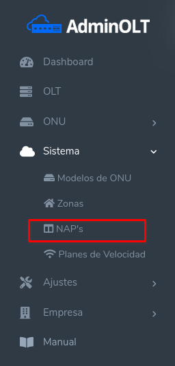 1Primero debemos ir al menú lateral y seleccionar en la sección Sistema la opción NAP's.