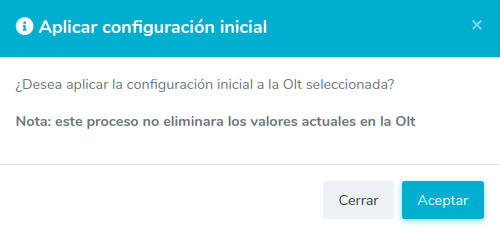 1Para poder crear la configuracion inicial en la OLT y crear una comunidad, dba, traffic table y libeprofile, es necesario ejecutar esta desde la vista de Lista OLT's.
