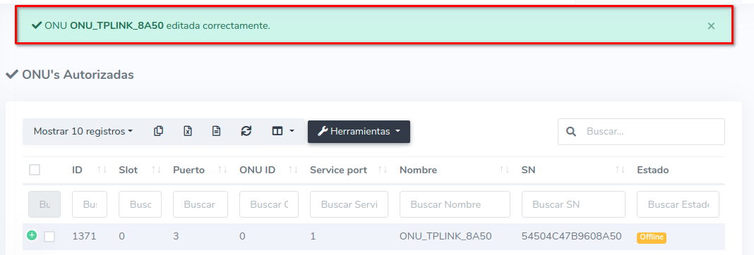 En este momento si vemos el estado de la ONU, este se encuentra en Offline debido a que físicamente no sé ha cambiado la ONU de Puerto, pero en AdminOLT si se ha actualizado la información.