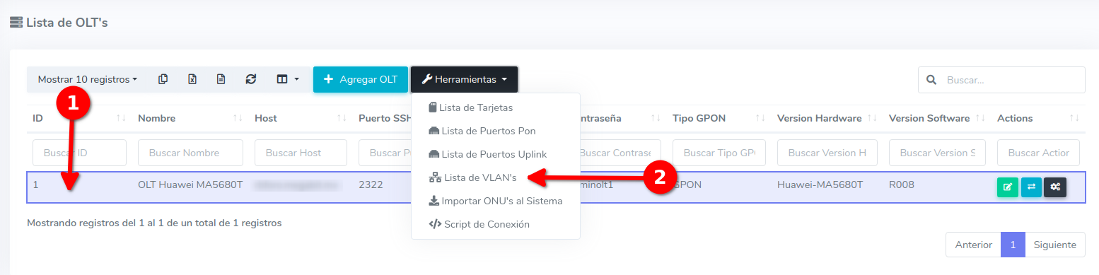 2Despues de agregar esta vlan en tu router, podremos asignarla en la OLT desde la lista de OLT's seleccionando la OLT ya la opcion lista de VLAN's.