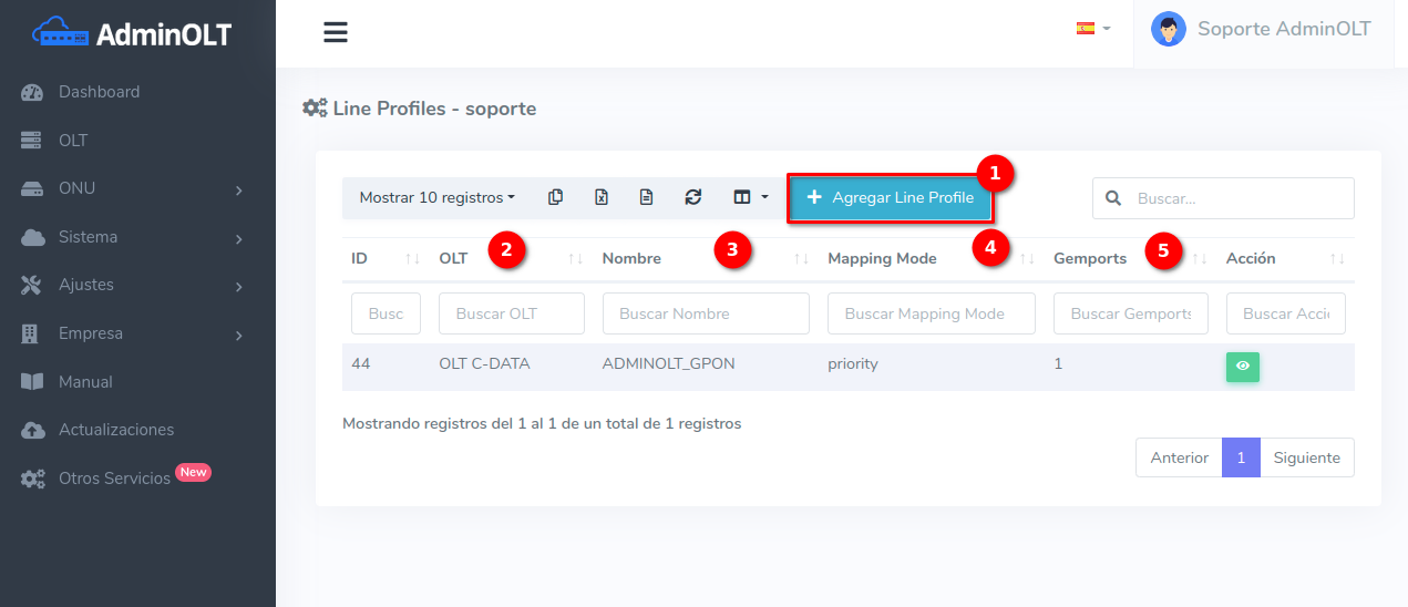 - Nombre: El nombre con el que fue creado el Line Profile, debe ser exactamente como se encuentra en la OLT.