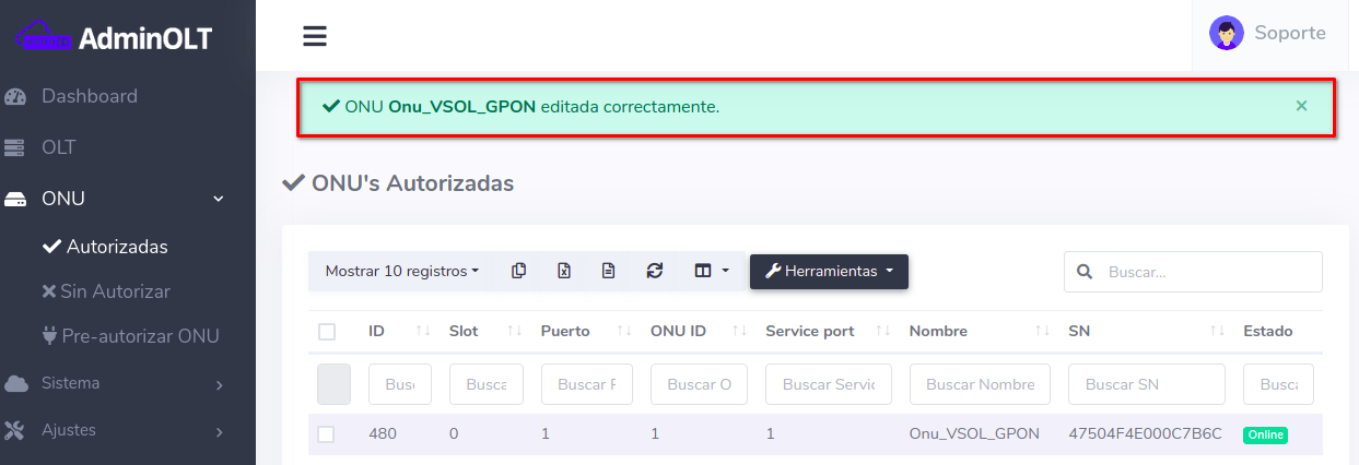 - Editar ONU en AdminOLT desde Lista de ONU's Autorizadas
