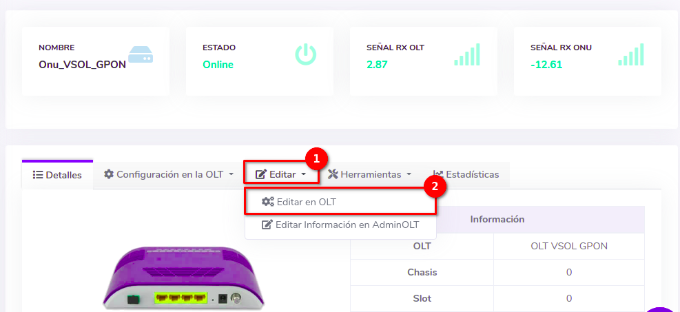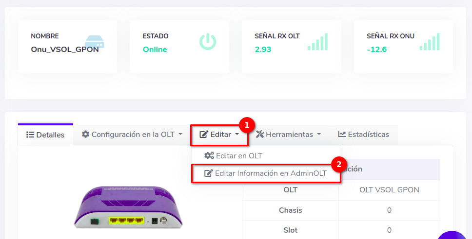 - Editar ONU en AdminOLT desde Detalles de ONU