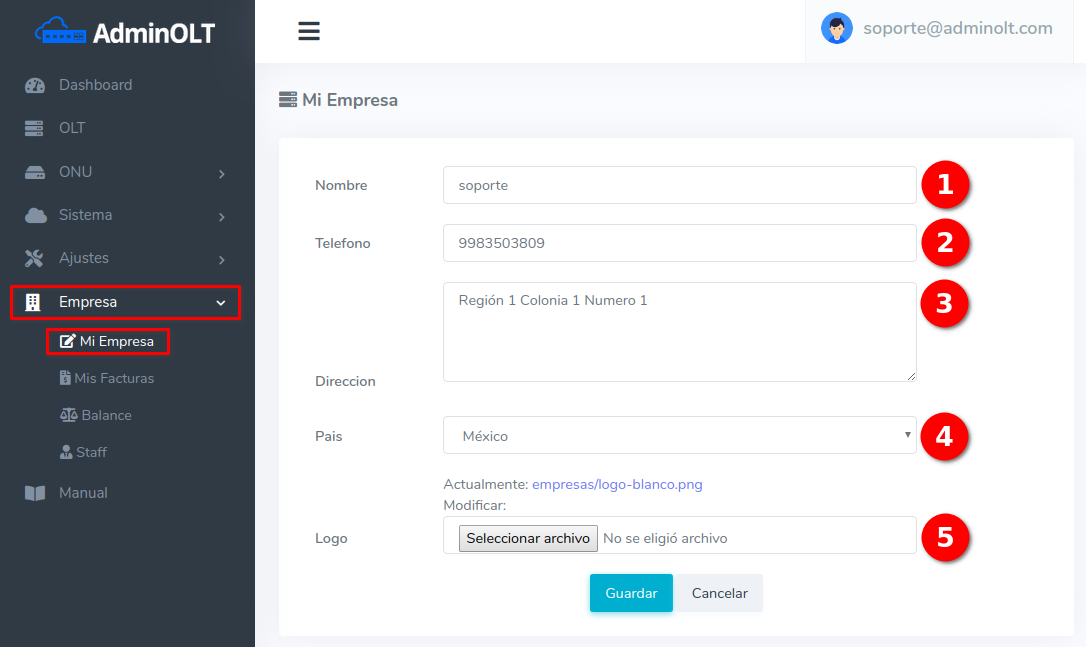 - Logo: Puede adjuntar el logo de su empresa.
