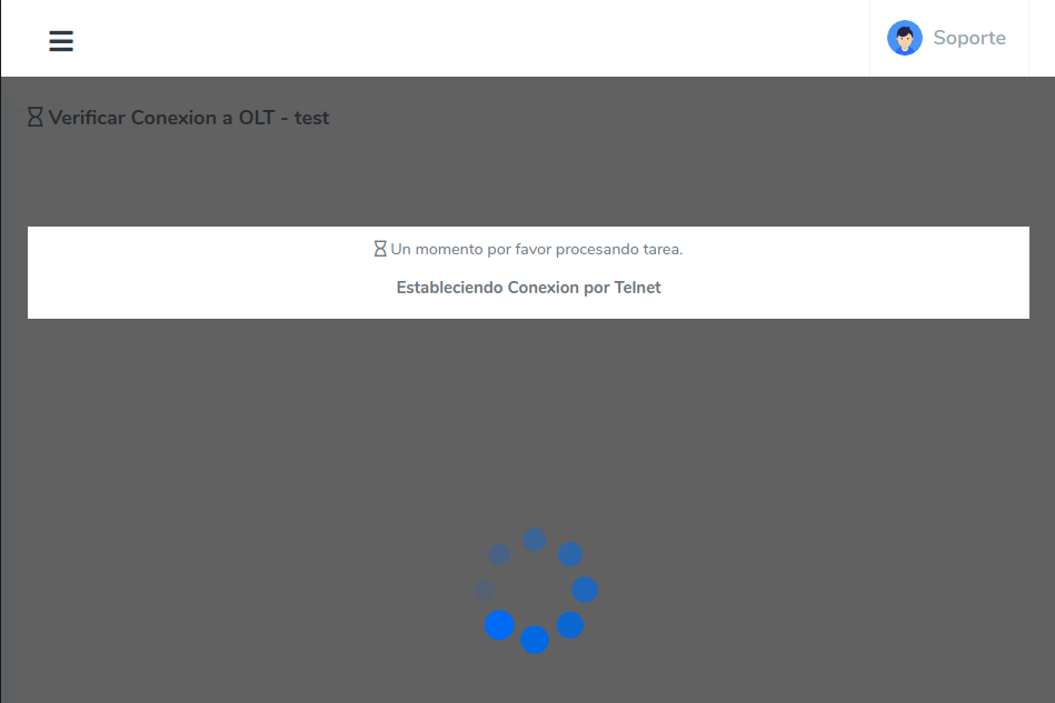 Podrá ver una pantalla de carga donde vera los estados de las conexiones como SSH, puerto PON, etc.