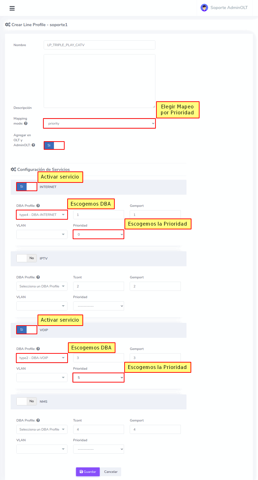 1Crear un Line Profile por cada VLAN desde AdminOLT