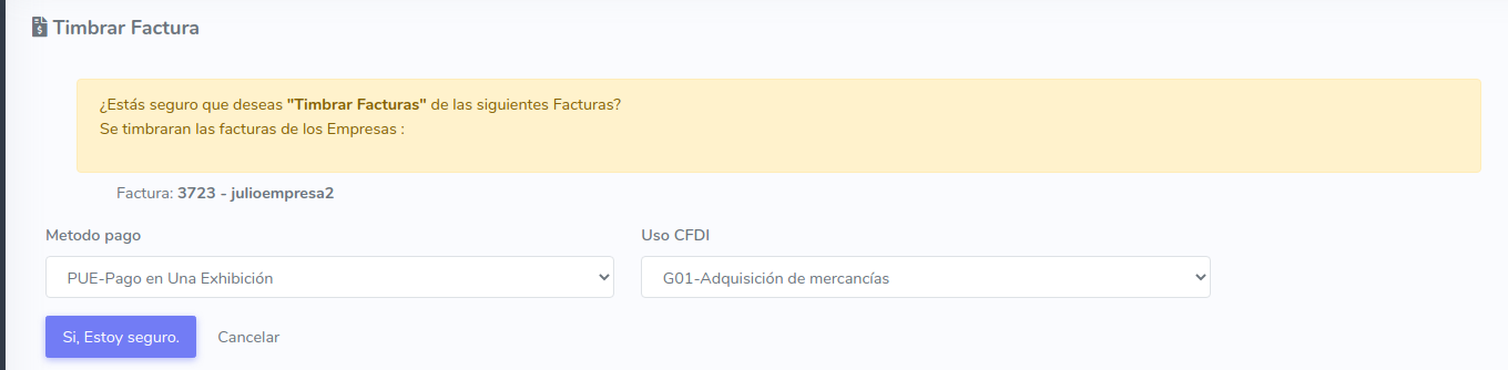 Para que una empresa extranjera pueda generar sus Facturas Fiscales del SAT, es necesario avisar a soporte tecnico([email protected]) para que le activen la opción de timbrar